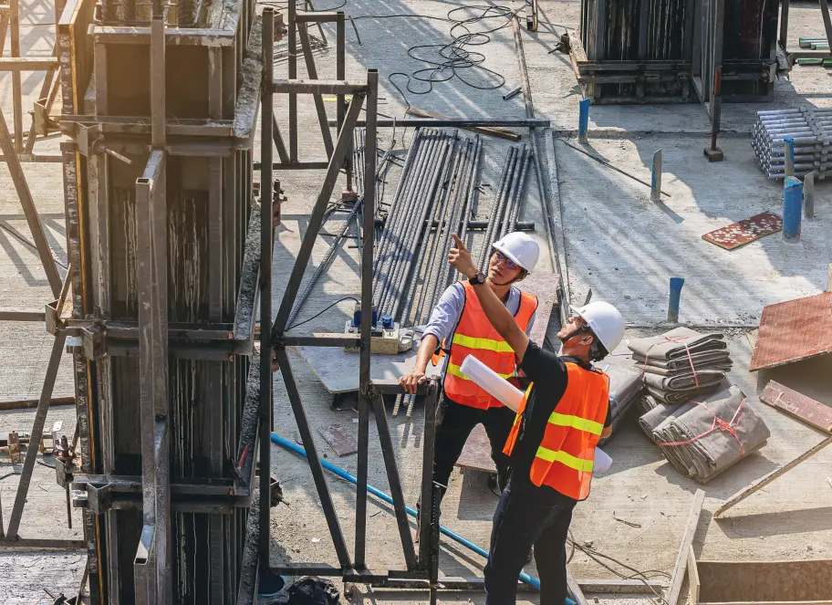 งานด้านโครงสร้างนี้จะเริ่มตั้งแต่ การทำโครงสร้างของฐานราก อันได้แก่ การลงเสาเข็ม และ การหล่อ ตอม่อ เพื่อรองรับโครงสร้างของเสาและคานที่จะต้องทำอย่างต่อเนื่องเป็นขั้นตอนถัดไป